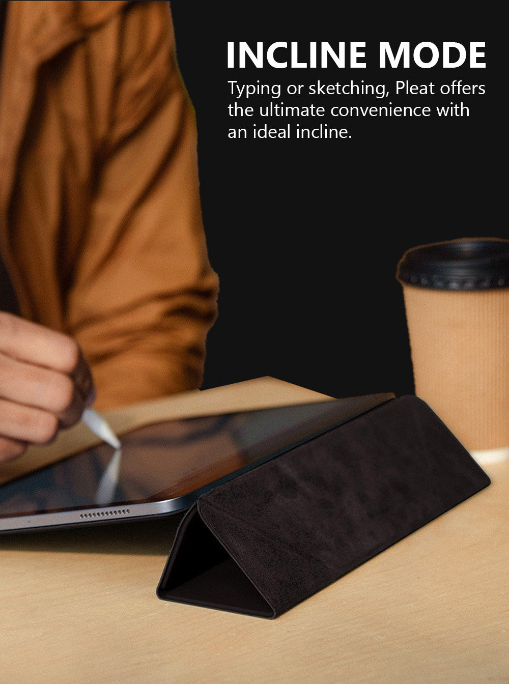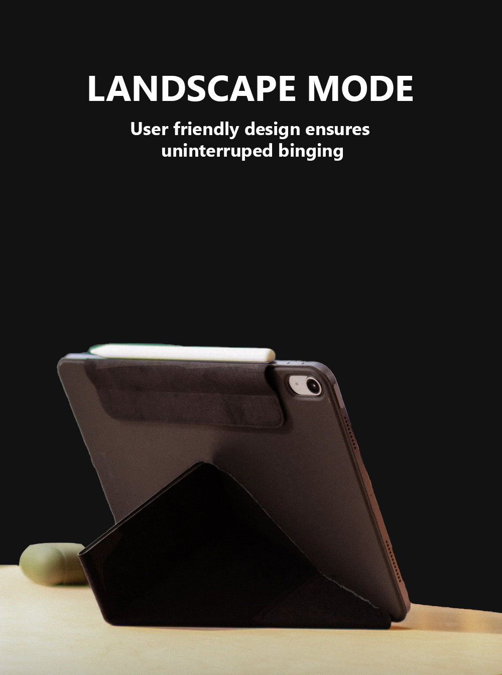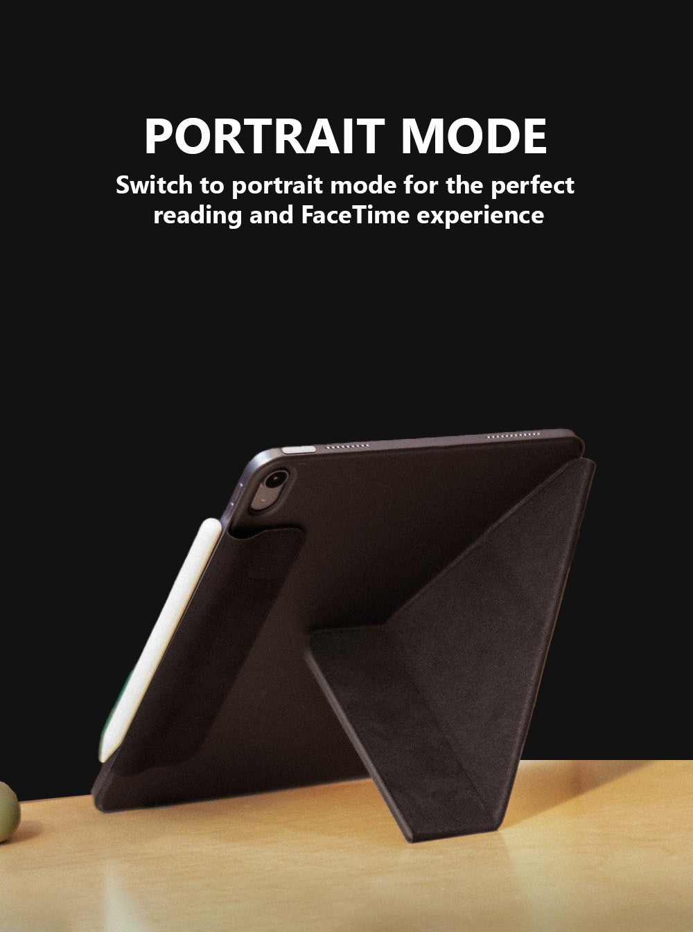 iPad Case, a Y-fold, magnetic iPad case designed to elevate your iPad with 3 ideal viewing angles for your everyday binging, sketching, typing and attending FaceTime calls. The smart folio case offers dual-side protection and seamlessly snaps onto your iPad for convenience.